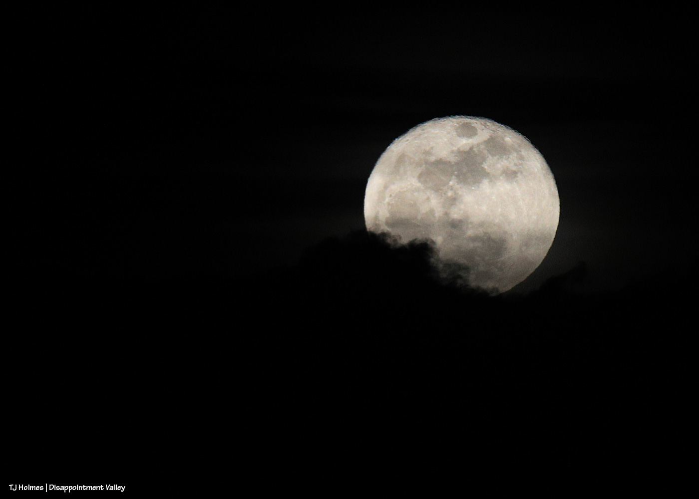 Because I couldn’t resist trying to capture it with my camera, too. π Those are clouds at lower left as the moon was rising out of the cloud bank.