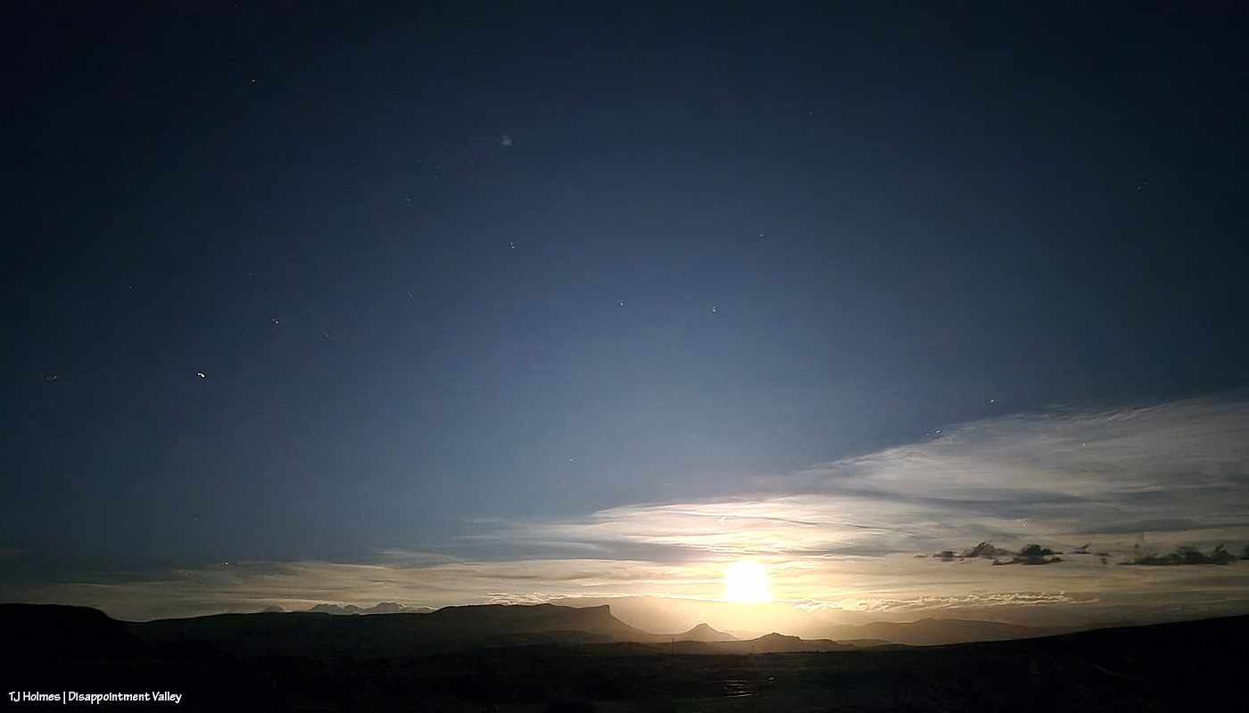 This is from my phone (!): Moonrise over Disappointment Valley. WoWoWoWoW!!!