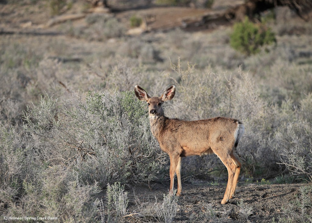 Wait, that’s not a mustang, I hear you thinking. π Correct! That’s a young mule deer, and s/he starts the journey of this particular blog post (which doesn’t include a mustang in sight). S/he was, in fact, inside Spring Creek Basin Herd Management Area, and I was on the road.