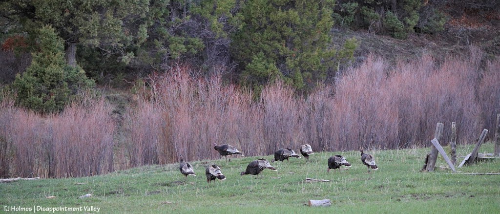 … but they very quickly flapped and flew those big bodies over the fence to rejoin their flock. (I can’t get over how green it is up-valley. This is just several miles above the south end of Spring Creek Basin.)