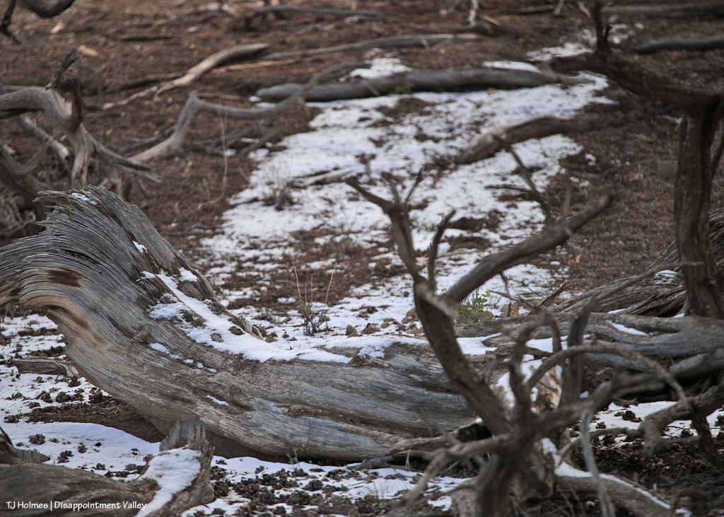 The tiniest bit of a tiny dusting still lingered in shady places under trees (this was just inside the Spring Creek Basin boundary from up-valley along Disappointment Road). Evidence that it HAD, in fact, snowed in the area.