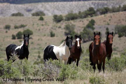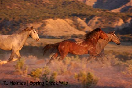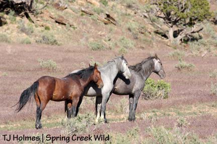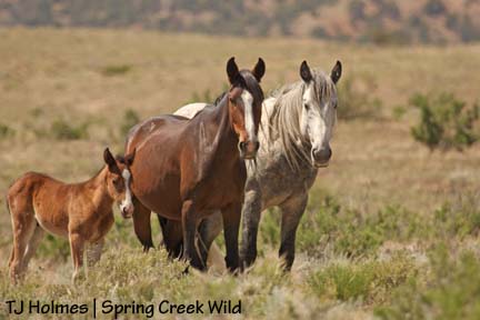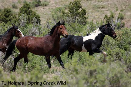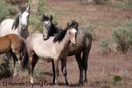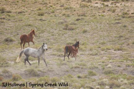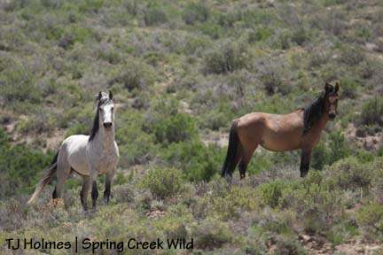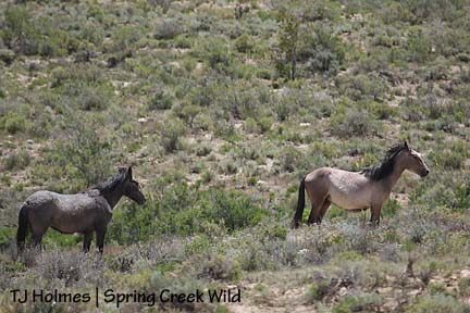 Grey/Traveler and Jif. The family was all spread out. These guys were closest to the road, and they all trotted up to it and raised the dust trotting on down it, following Steeldust’s band.