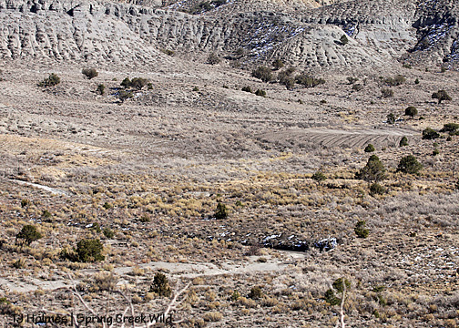In the morning, before sunrise, it was 15 degrees in the basin. The morning star was glittering like a droplet of  ice on the eastern horizon while the sky grew steadily lighter. In the dim light, I had a sighting that made my heart leap: Duke. It was hard to see him because it was not yet exactly light and because of the distance, but he looked a little off – still. More on him to come.