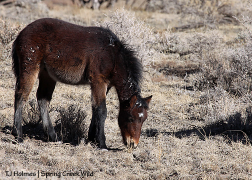 Liberty is our third orphan since I started the documentation of the Spring Creek Basin herd. My introduction to Twister was when he was already orphaned, possibly during the roundup. Shadow’s dam, Ceal, died sometime over the winter of 2007-08. Liberty is 6 months old, and she’s a tough little thing. I think she’ll be OK.
