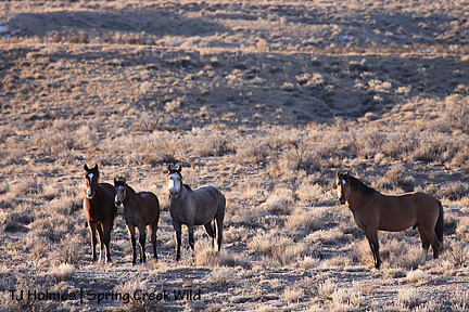 Hollywood and his girls and his youngster found me, grazing quietly in the pre-dawn light down a line of hills below the road. I hadn’t spent much time with them lately, so I put my down coat on top of my jacket and 14 other layers, wrapped my ear-band around my head, readied my gloves, put extra batteries close to my heart … and waited and watched the creep of light.