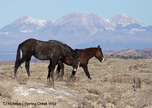 Iya (April 27, 2008) and Terra (May 1, 2009); La Sal Mountains in the background. They were born the same color; look how dark Iya is now!
