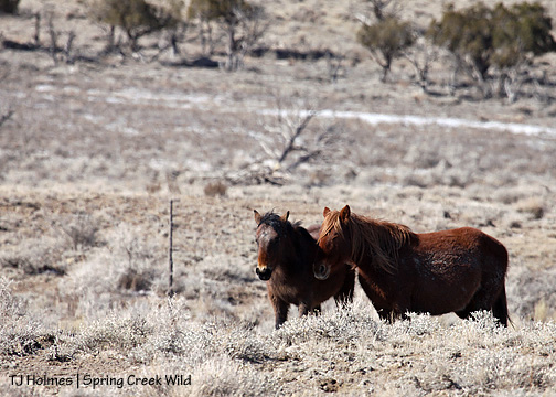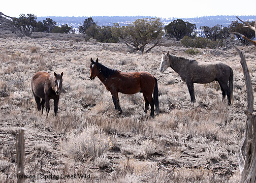 Bounce’s band came into view … then Hollywood’s. Then … Jif! She was walking up out of an arroyo kind of between me and Bounce’s band, and pretty quickly, Hayden and Cuatro, then Chrome, then Two Boots followed her. What a wonderful surprise! And a reminder how easy it is for horses to be out of sight very nearby.