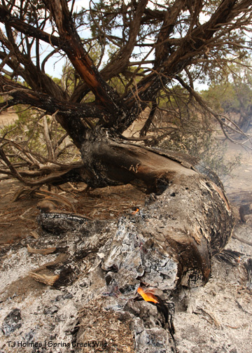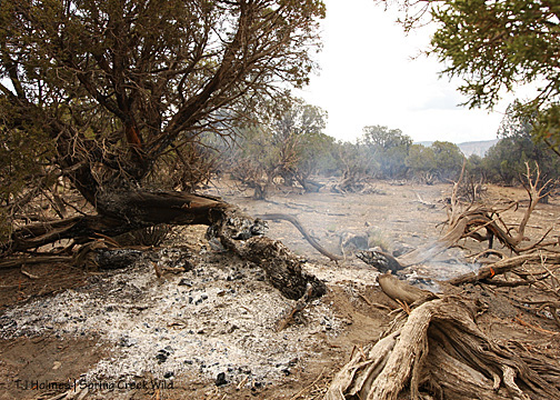 I left the horses to their naps and went on up the hill, unsure if the grey I had seen earlier with Storm-chaser was Mouse or Hook. I was hoping it was Hook, but if it was, he was out of my sight. The horses were about halfway up the hill. I don’t very often think about snakes while I’m out in the basin. I did see a rattler in Sand Wash Basin, but the only rattlers I’ve seen in Spring Creek Basin have been on a road – at night – and I was safe in the Jeep! I grew up in rocky Texas hill country, so I’m not afraid of snakes, but I don’t want to surprise one as close as I did the bird! No snakes, and I found a pretty little “park” below the cliff at the top of the hill – the confluence of at least two canyons.