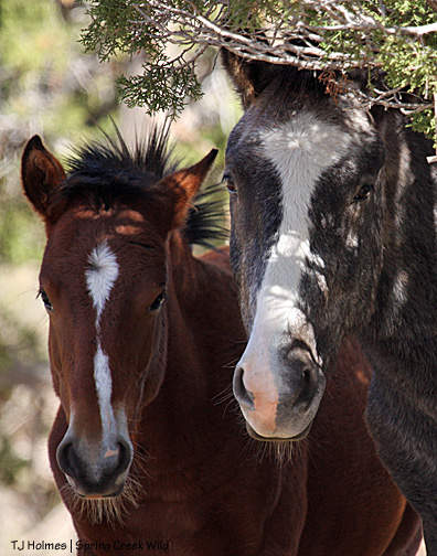 I didn’t intend to get so heavy with this post, thinking “love triangle” was a cute way to illustrate the picture of Mahogany with her boys and bring up – and debunk – misconceptions about PZP at the same time. But we’re all locked in a love-hate triangle: wild horses, advocates, BLM. Wild life is messy, not all advocates agree with all other advocates, BLM itself is a dysfunctional agency, I believe, but I also believe there are some good people within its ranks. One cannot paint all herd areas with the same broad strokes, nor all herds, nor all advocates, nor all BLM employees.