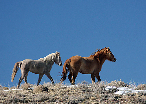 What I am FOR is mustangs, wild, on their home ranges, without disruption, longer. I hate roundups – I had a very physical reaction at our roundup in 2007, and to say I am not looking forward to the roundup this fall is the understatement of the eon. BUT – I would rather see healthy horses, able to withstand the helicopter’s assault, brought in than horses in lesser condition. Our horses in 2007 were not quite skinny … but where’s the line? They were definitely lean, on the edge. The population was way over AML, probably between 110 and 120. The basin is fenced or cut off by insurmountable natural boundaries. The amount of forage is limited; the amount of water, even more so. The quality of water is terrible – alkaline with a higher salt content than is considered acceptable for livestock. Cattle graze on the area only from December through February – only when there’s snow – fresh water in frozen form. Coincidence? I doubt it.