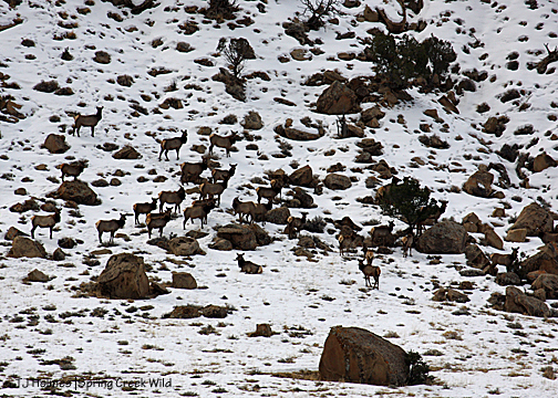 I love to see big healthy herds like that. Those shots are hard to capture. They blend in great among the rocks and snow–you’d have to really be looking to see them in those first pics. You just might get a lot of snow late in the season. We’re getting some here right now.