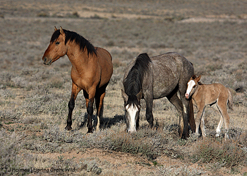 Comanche, Kestrel and Winona were very nearby … I love this of Hollywood with two of his girls and one of his boys, wide expanse of sunlit basin behind them – dawn of another day. Comanche’s and Hollywood’s have often been near each other this year – since winter. ‘Nona and Tenaz like to play together … Piedra, Baylee and Kestrel all used to be with the same band (Baylee and Kestrel, at least, are likely half-sisters (daddy: Steeldust)) … what (else) draws them together?