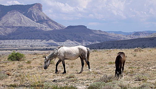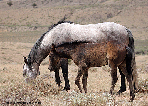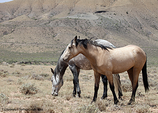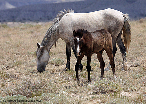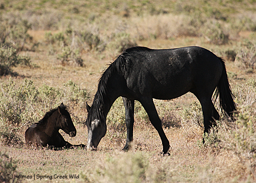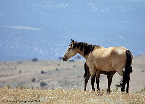 Most of our older bachelors have found families, and we have a new generation of bachelors. They’ve been together, they’ve paired up, they’ve split, they’ve found older boys, they’ve found boys slightly less old. During last week’s visit, all the young boys were with Aspen and Sundance (who have their own history), and they were all hanging out close to Luna’s band, which has Lt. Steeldust (formerly the band stallion) and satellite Mouse (and those two have gone back and forth in recent weeks). This visit, Mouse was entertaining the boys while Steeldust and Butch stayed close to the girls (Luna and Alpha).