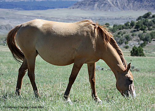 Kootenai is a 6-year-old mare from Sand Wash Basin. She was brought to Spring Creek Basin on Oct. 24, 2008, with Raven (still in Kootenai’s band with Kreacher) and Mona (now in Seven’s band). Raven was pregnant when she came and had Corona (named after her sire, Corona, still wild in Sand Wash Basin) on (or about) April 29, 2009. Mona had Shane (sired by Kreacher) on (or about) Sept. 15, 2010, and Raven had Apollo (sired by Kreacher) on (or about) May 10, 2011. PZP-22 was administered to all three mares before they came to Spring Creek Basin. It worked wonderfully on Raven – she did not foal in 2010. It worked probably as well as expected on Mona – she didn’t foal until September 2010. And it has worked very well on Kootenai – she’s 5, in obviously fantastic condition, having her first foal. The late date is unfortunate but is likely due to timing of application over the vaccine itself – and Jif herself is proof that September foals happen without interference (Hayden’s birthday isn’t till Sept. 22).