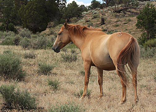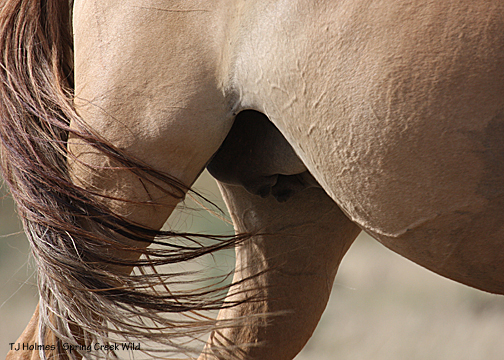 (Disclaimer: I’m not able to get to the basin this week or next, but I’m almost positive she won’t foal in the next two weeks. That said, I haven’t been around pregnant domestic mares for a while to be an absolute great judge, so if you are positive she WILL, make your guess accordingly – and let me know – I might be able to send someone out to check her for me.)