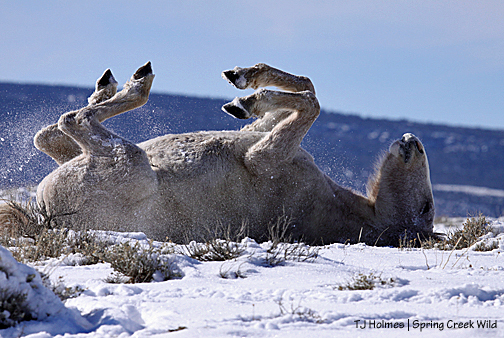 The basin got quite a bit of snow from our last run – probably 3-4 inches (after few days of blazing winter sunshine) of that beautiful, flaky, slippery, cool, dry, million-color-reflecting white stuff. I swear it’s the most beautiful snow in existence. Ponds are frozen, but the horses know where to find puddles that thaw despite their shady locations in deep arroyos and the run of cold temps we’ve also had. And, of course, there’s moisture all around in frozen crystalline form.