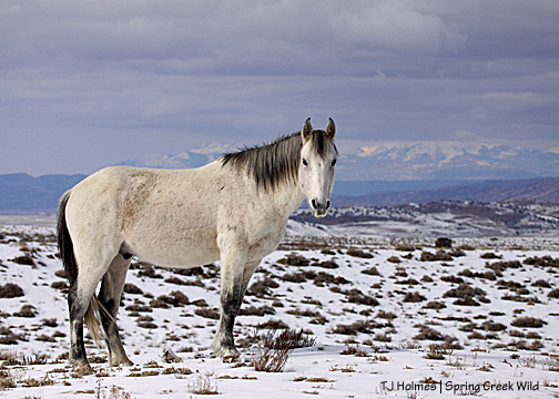 No new photos of the horses, so I’m reaching back a month for this one of Grey/Traveler, handsome against a lowering sky and the La Sal Mountains of Utah.