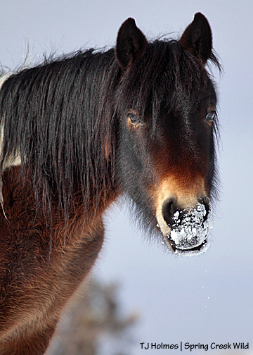 We got some good snow a few days ago, and most of the basin has quite a good cover. Now it’s cold – sometimes bitterly cold – under the crystal-clear sky. But the horses have thick, rich, furry coats, and they’re in excellent shape!
