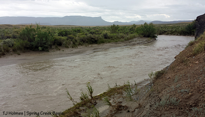 And this is Spring Creek a coupla-few hours later after the above peak. Still high but receding.