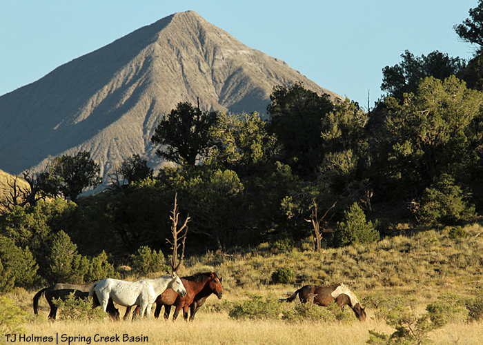 This photo was taken from the Disappointment Road looking eastish toward Spring Creek Basin. The rimrocks in the foreground form the basin’s western boundary. Also visible are two of our main landmarks: McKenna Peak and the unnamed promontory.