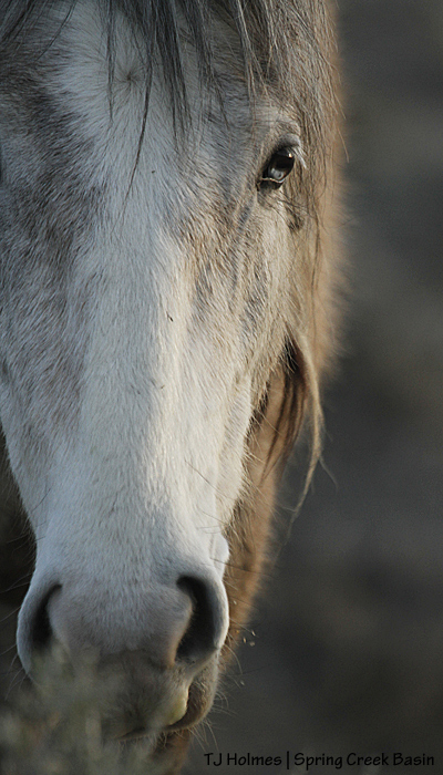 Mustang. Rimrocks. Utah mountains. Clouds in the sky (rare). Body, grounded.