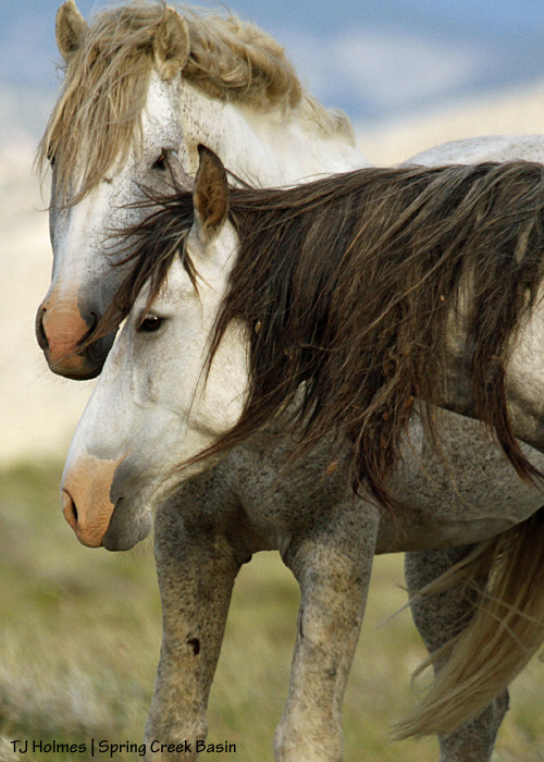 Chrome *does* have a great mane, but it’s hard to see in this pic because of the wind. Terra is in front with the darker mane. 🙂