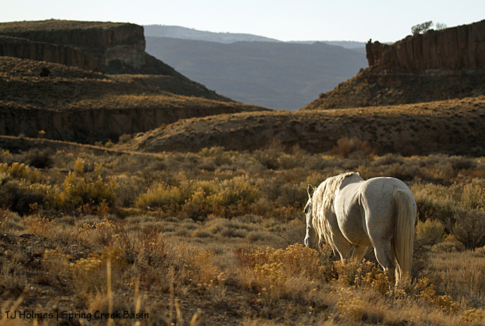 The layers here, with Spring Creek canyon in the foreground and the hills of western Disappointment Valley in the background, and a wonderful wild pony wandering across that view, make me feel that all is right with the world. All is not so well with the wider world, of course … so we send a little of our peace to the universe.
