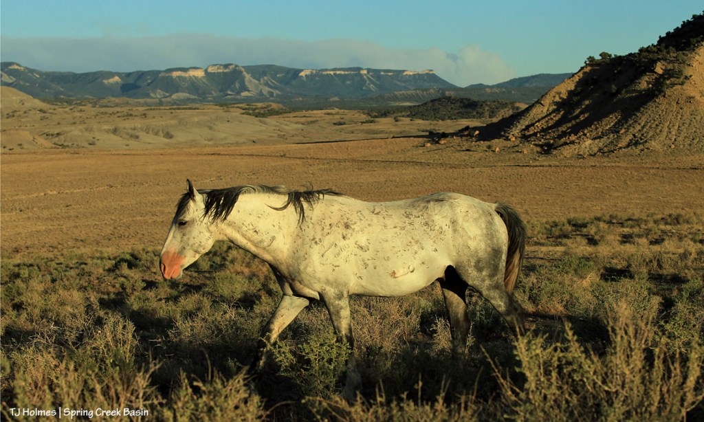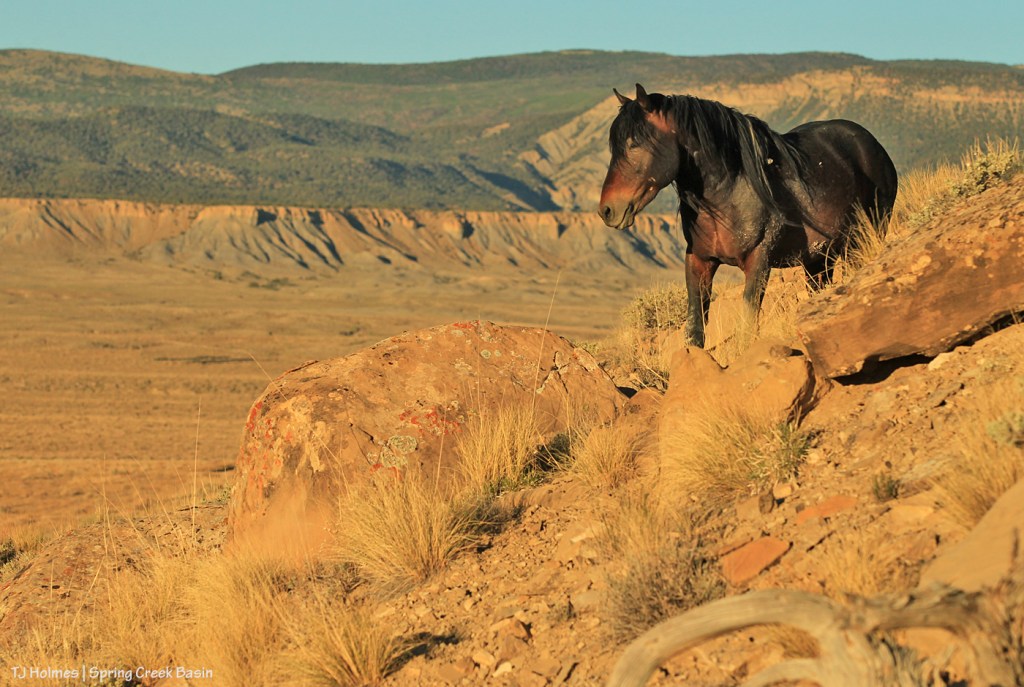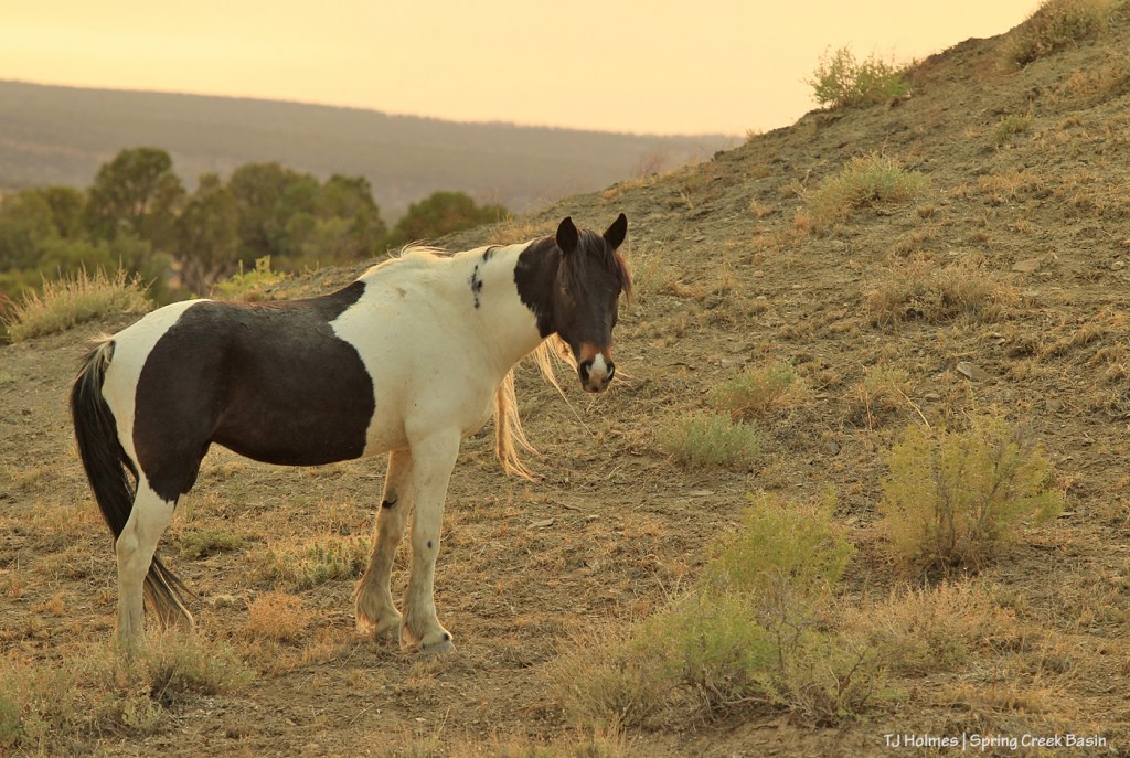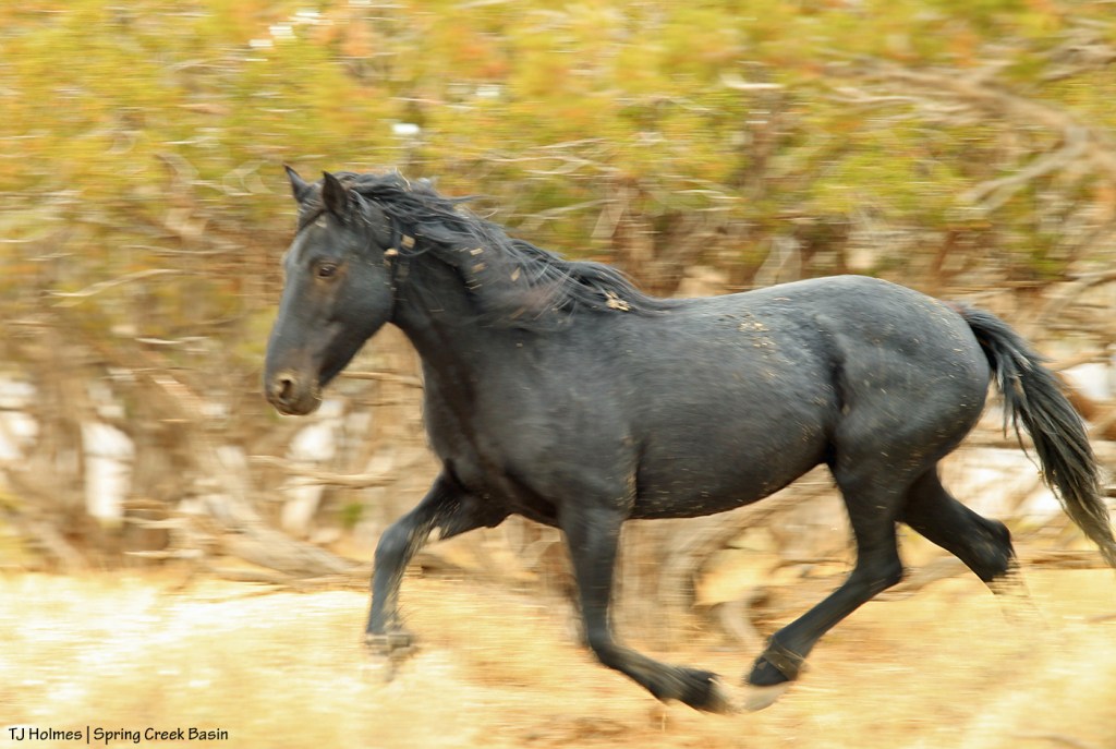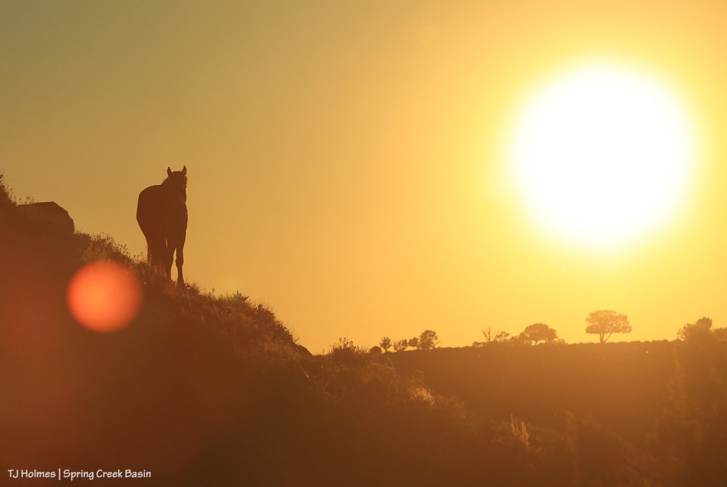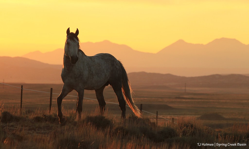 The fence is the western boundary of Spring Creek Basin. The white cable as the top “strand” of the fence is from the old days when roundups were done by helicopter, and the horses were moved to the west fence line, then down into Spring Creek canyon and trapped at the upper end of it.