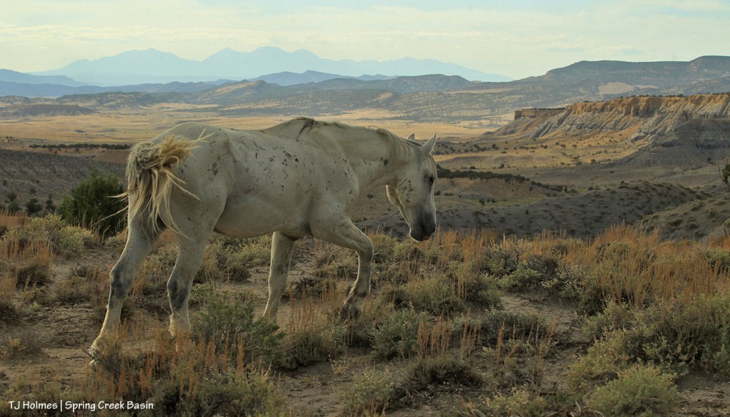 Bonus points if you spotted the white spot on the hill behind Hayden’s band and realized there was another band up there. 🙂 They came later; mustangs have a great sense of etiquette and are very polite when it comes to manners. (At least, Spring Creek Basin mustangs are that way!)
