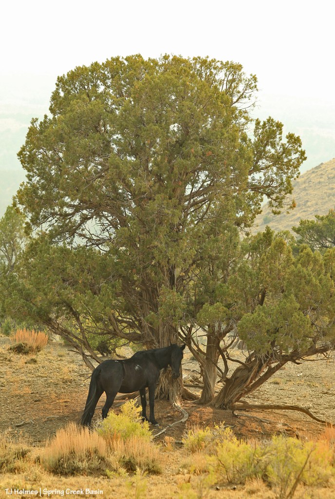 There’s a ridge in the background of this photo – beyond the big juniper tree (with multiple trunks). Can you see it? Admittedly, it’s difficult to see, though it’s probably only a mile or two as the mustang trots.