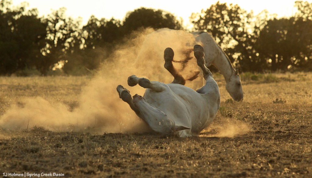 Terra was the third mustang to take advantage of that particular spot of good-rolling dirt. Comanche nonchalantly kept watch but didn’t take advantage of the good dirt.