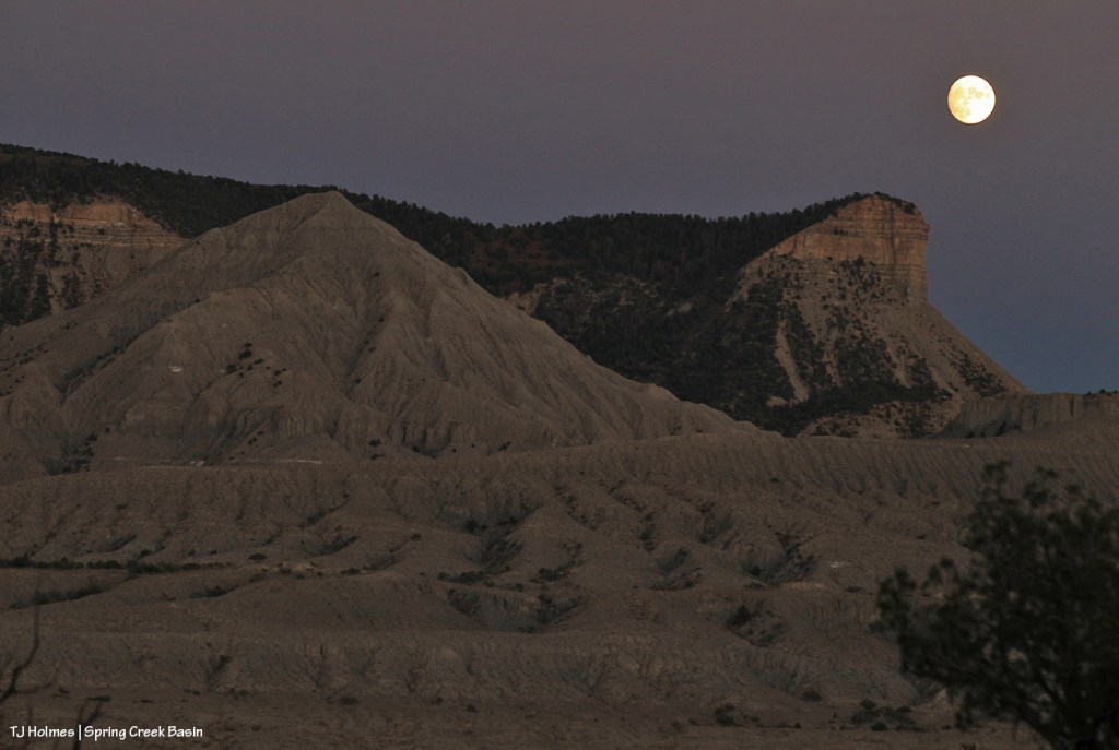 By 7:09:38 pm., the ponies were browsing over the ridge, I was on my way back to the Jeep, and the moon was still rising.