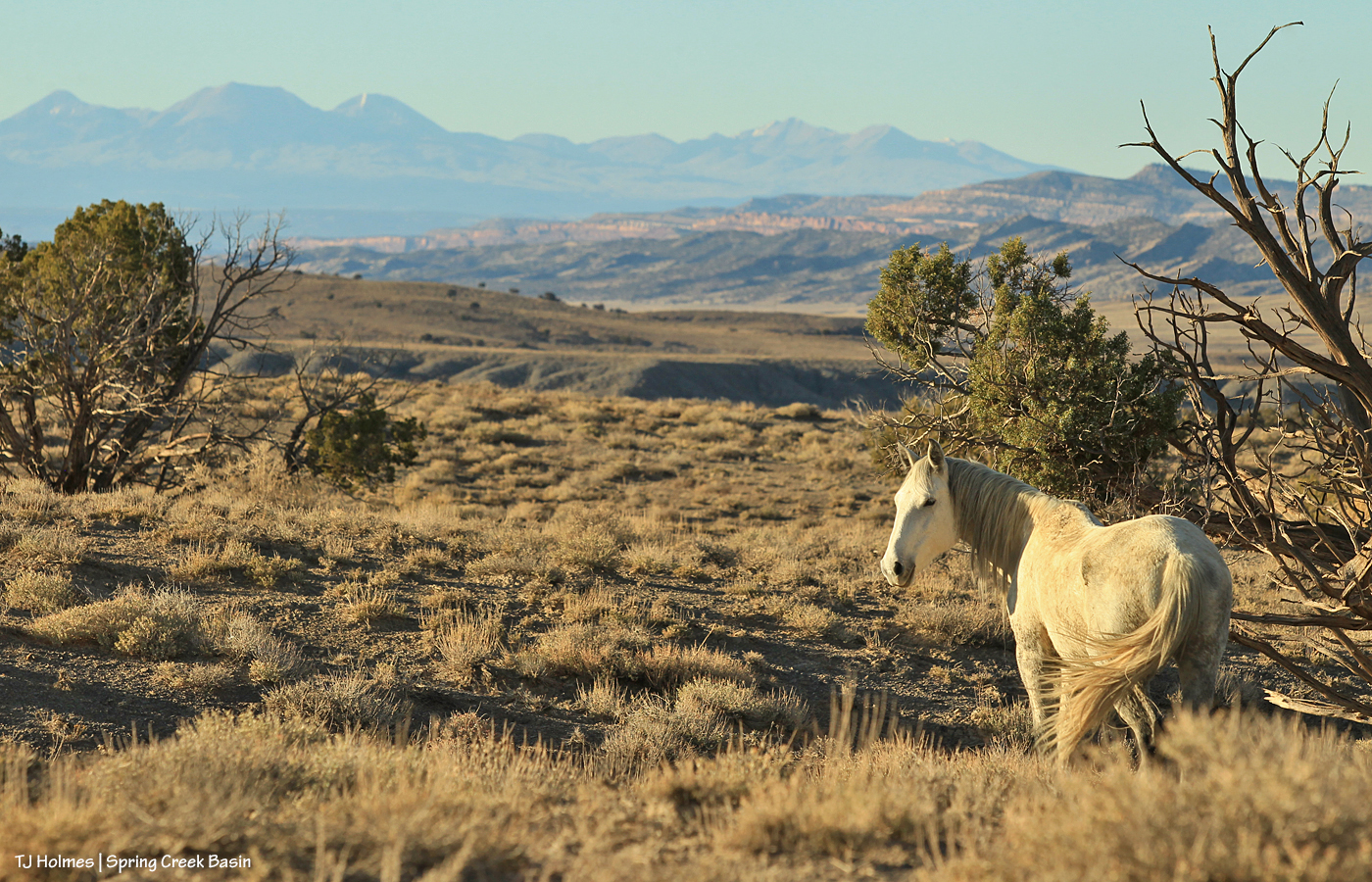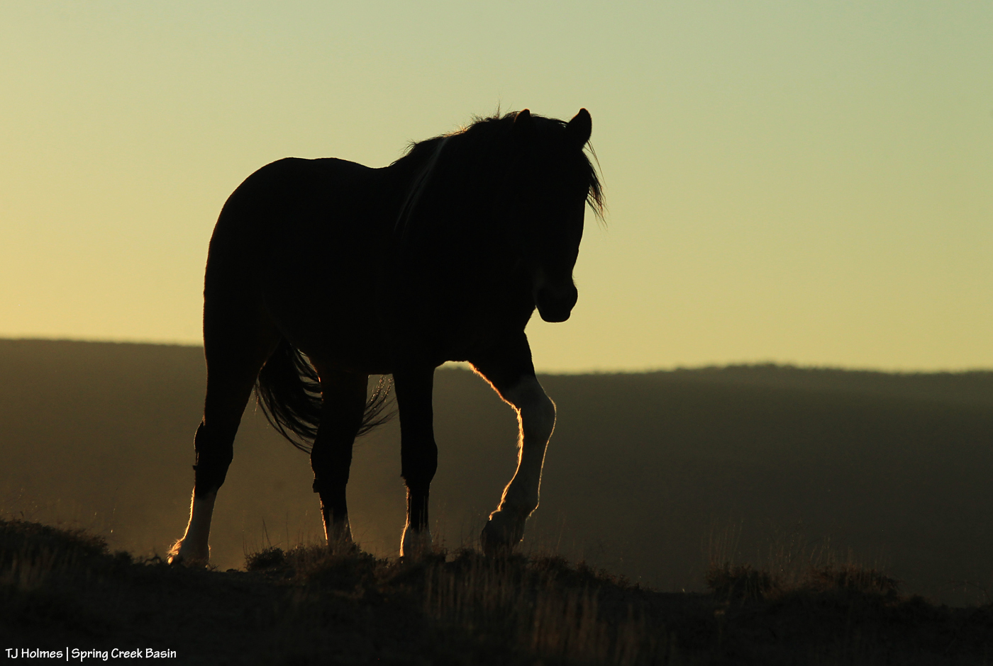 Killian watches his mares just as the big ball of light slips behind a hill at the end of another beautiful day in Spring Creek Basin.