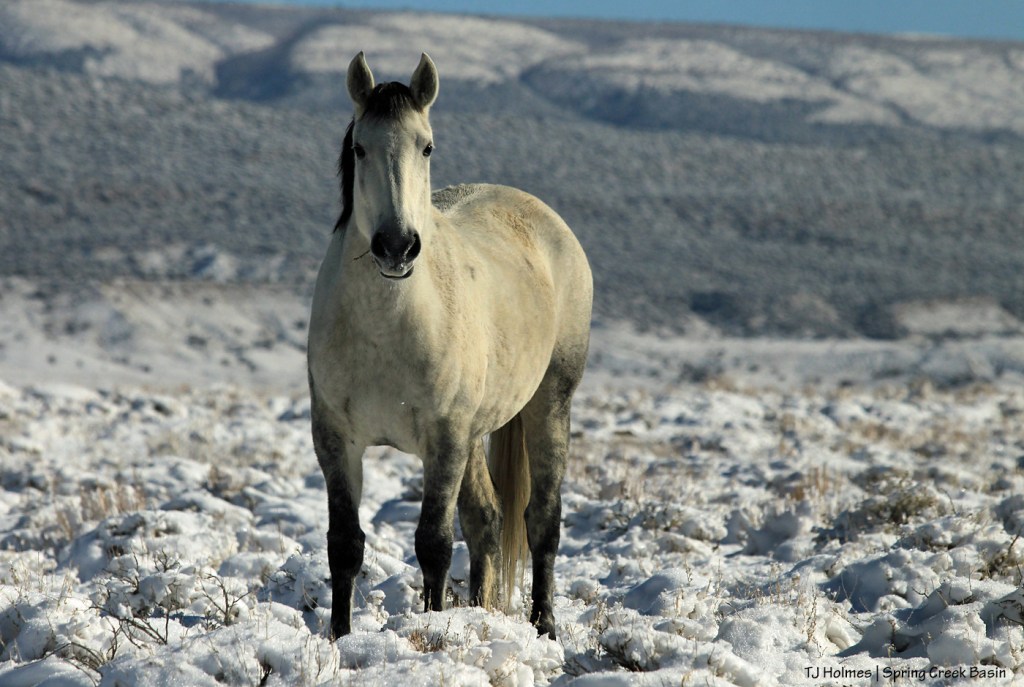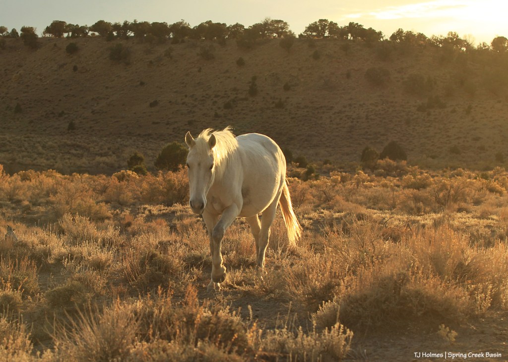 Above, Tesora displays her gorgeousity at the end of a magnificent day in Spring Creek Basin a few days ago, when the air was warm and the ground was dry, dry, dry. But as I didn’t have pix of soaking wet mustangs, I thought she’d have to do. 🙂
