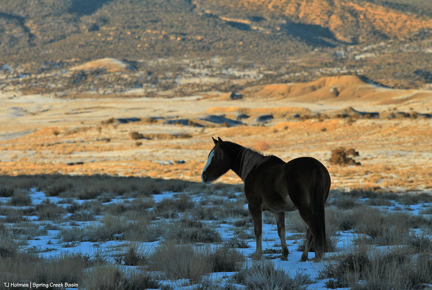 Lingering snow, lengthening drought, a mature stallion and an up-n-comer. Life goes on, even as the calendar’s days get shorter. In all these years of photographing the mustangs, it is the late – and late-in-the-year – light that I love the best. If I worry and fret (and I do) about lack of moisture and what the coming days and seasons and year will bring, still, I seek that beauty and these amazing horses that allow me brief visits and journeys along their paths – even, sometimes, while they are making the tracks. In my fortunate gratitude, I even find it.