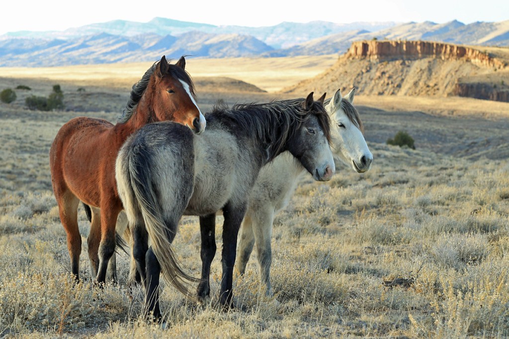 We knew we were in trouble early in the winter when Mother Nature simply didn’t give us the amount of snow – aka moisture – we would need for the rest of the year. … For plants to grow, for ponds to fill, for creeks to flow (for very long). Sure, it made getting around – driving and hiking – a piece of cake, but in the case of Colorado (and much of the Rocky Mountain West), where we absolutely depend on winter white for summer green, it was looking bleak. I had hiked out to an area where a couple of bands were grazing, and later, as they started to line out toward a pond, back toward the road, I meandered along with them. … And then the sky exploded. When that happens, you’re a) glad you’re with mustangs, b) ecstatic to see Mother Nature’s art come to life and c) uber-aware of time and how it flies. The horses were following a trail, so I picked a likely spot and left the trail and set up the shot. As the horses trotted by – following some and followed by others – I hoped I remembered everything about photography that I’d ever learned … and then I hoped the computer would reveal that everything had literally trotted into place in even one rectangular, finite image. … Voila. 🙂