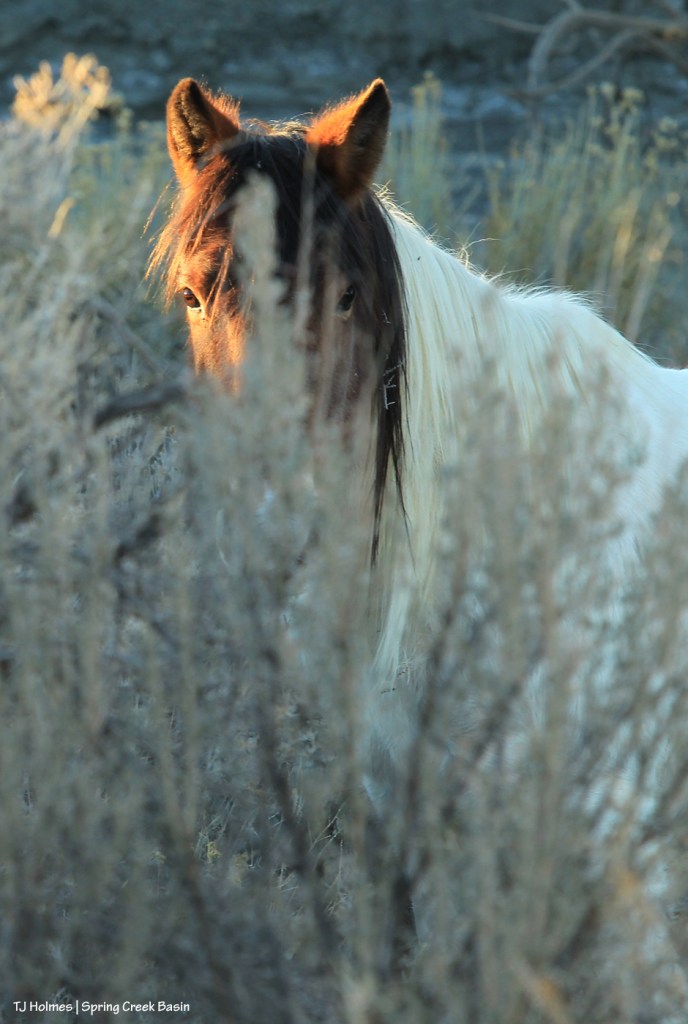 Chipeta takes advantage of a jungle of greasewood and rabbitbrush in the bottom of an arroyo to hide from the intrepid photographer.