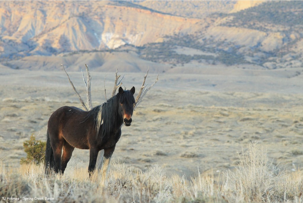 Killian and his band had run from the road about an hour before I took this pic of him, far interior in the basin and away from any road. (And yes, they ran because the noise and annoyance level from two dirtbikes, a souped-up dirtbuggy and an ATV was excruciatingly high.) He was napping and watching one mare while his other mares grazed around him.