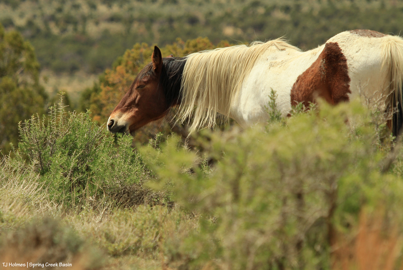 The grey amiga girls – Alegre, Maia and Houdini – were having a greasewood feast a couple of evenings ago. I recently learned that greasewood is a source of keratin, which contains protein, and maybe that’s why the horses like it so much. … I still think it’s cuz it tastes like ice cream. 🙂
