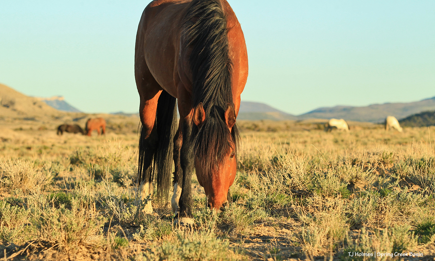But while they are looking fabulous as the days warm suddenly into 80-degree territory, they’re also almost frantically hunting the elusive green (it’s not necessarily elusive … there’s just not a lot of it (… yet?)). So there’s kind of a whole lotta domesticity going on in the basin these days while the horses, well, simply graze. (In other words, he wasn’t quite willing to strike a “handsome-mustang” pose!)
