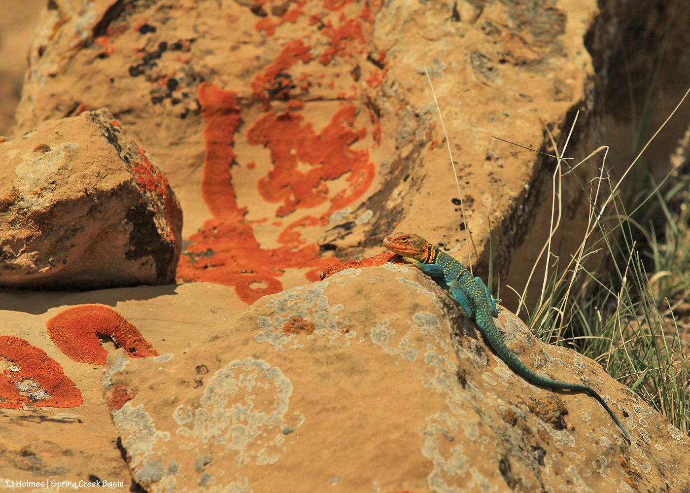 Kudos to eagle-(lizard?!-)eyed friend Pat Amthor for spotting this collared lizard on a rock as we drove by on a gorgeous afternoon in Spring Creek Basin! And she didn’t see it from this angle; she saw it from the left (I’ve backed up here when she shouted “lizard”!), where only the head was visible – almost the same color as the rock.