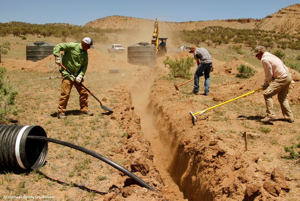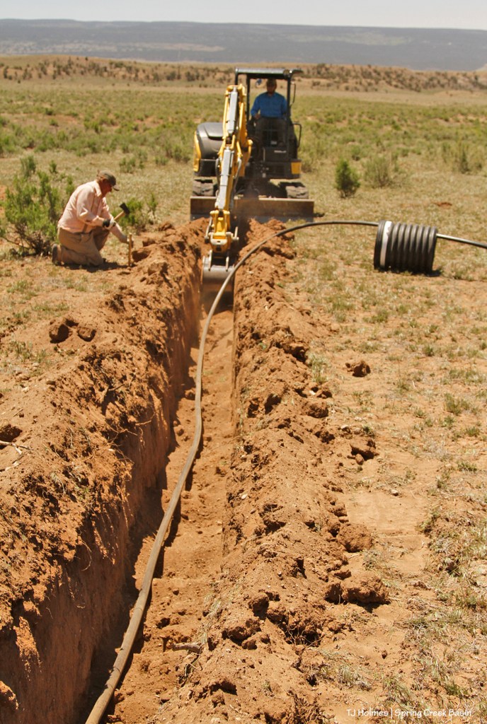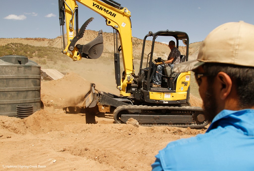 And *just like that* (!), the guys were almost done with phase 1 of the newest water-catchment project in Spring Creek Basin! I want to be sure to mention that all the trenches and holes were covered before they left. They did some more smoothing of the dirt Monday when they returned to retrieve the excavator.