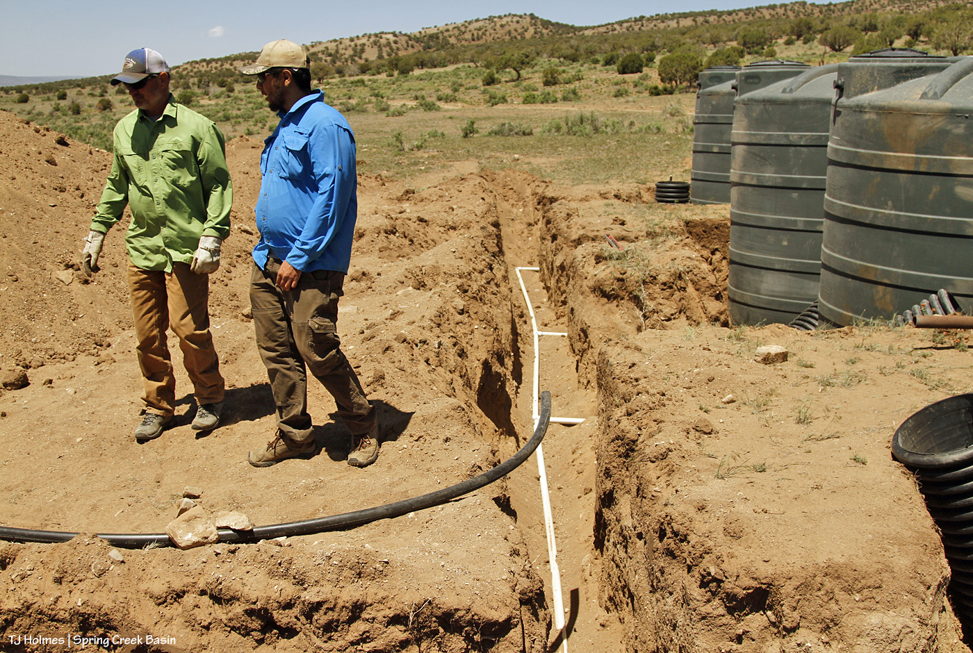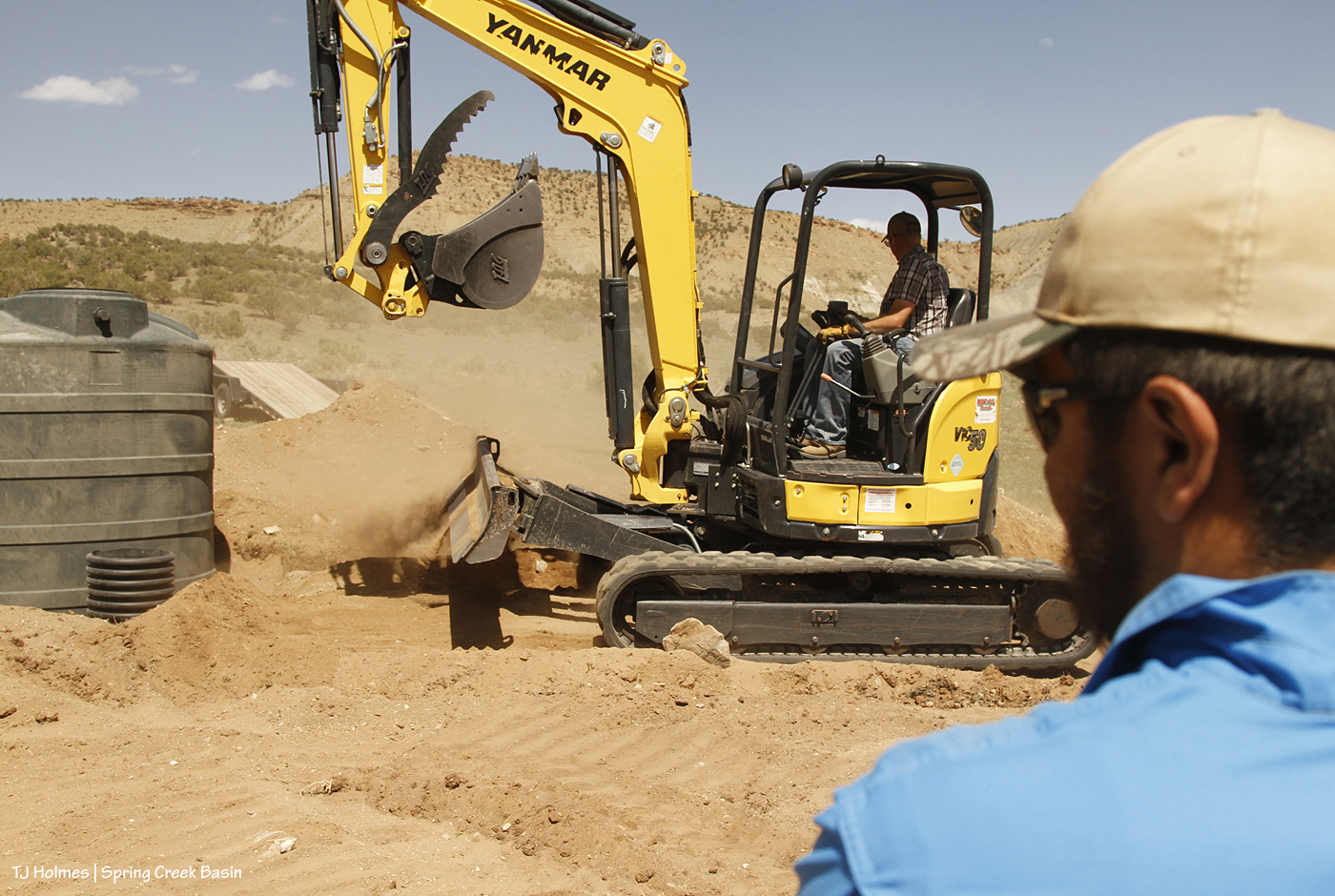 And *just like that* (!), the guys were almost done with phase 1 of the newest water-catchment project in Spring Creek Basin! I want to be sure to mention that all the trenches and holes were covered before they left. They did some more smoothing of the dirt Monday when they returned to retrieve the excavator.