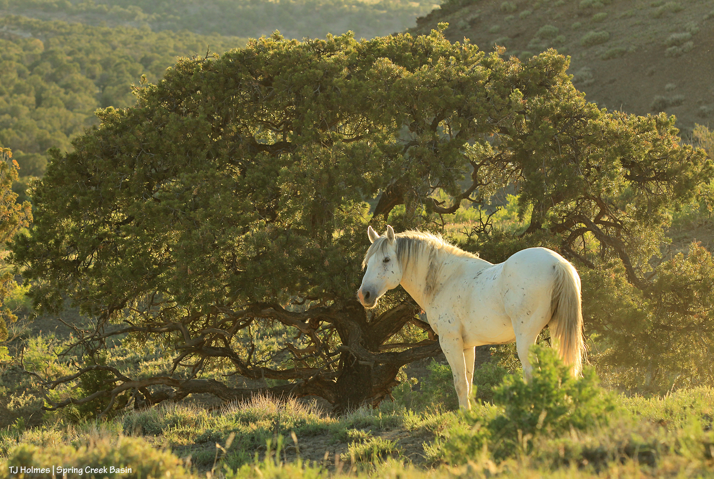 And looking down into my heart’s own home ground: Spring Creek Basin. Round Top and Knife Edge are visible from here … and all the millions of other unnamed (or named only by me) places I traverse in my travels to see the mustangs. There actually are horses in this pic, though I’m not sure they show up in this very long and very far cellphone view. 🙂 Do they need to? The magic of knowing they’re there is enough.