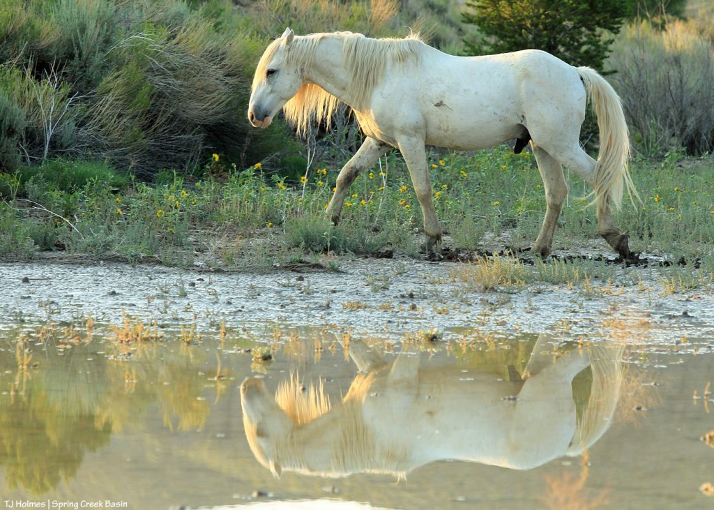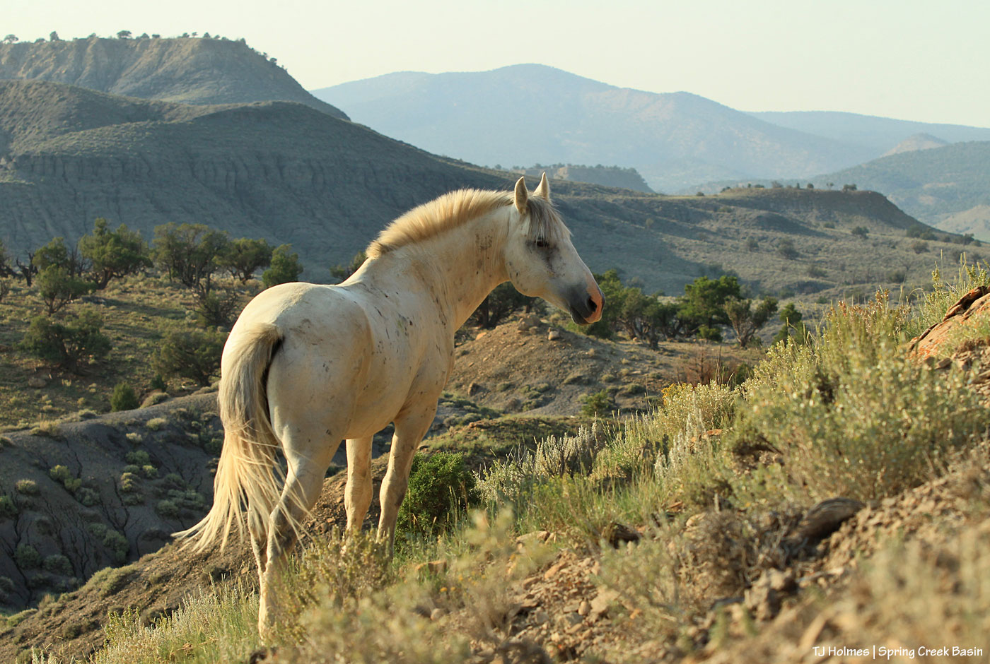 Sundance and his mare had already made their way to the pond behind me, and in this image, he’s catching sight of another band making their way to their evening drink. Such a seemingly simple thing … which hasn’t been simple at all during our ongoing drought. We are so amazingly grateful for the rain and for the mustangs to have relatively “easy” access to ponds again!