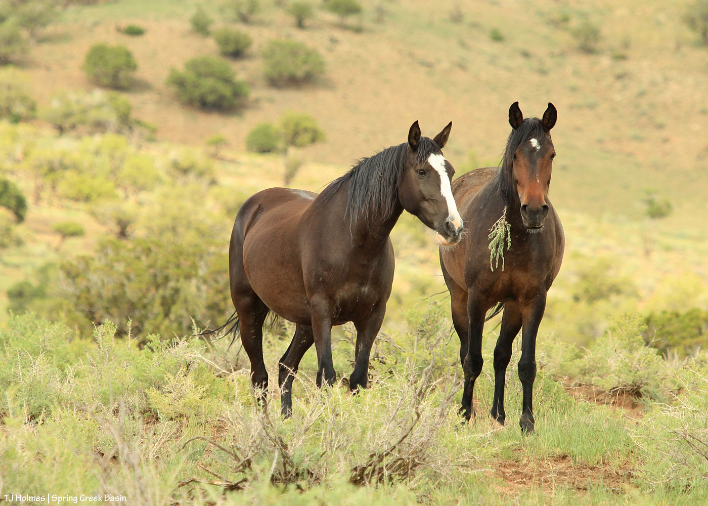 Another couple of besties in the basin are Raven and Cassidy Rain. They’re usually pretty stoic girls, but every now and then, they like to spice things up. Cassidy Rain went with a sprig of greasewood. … I think it suits her!