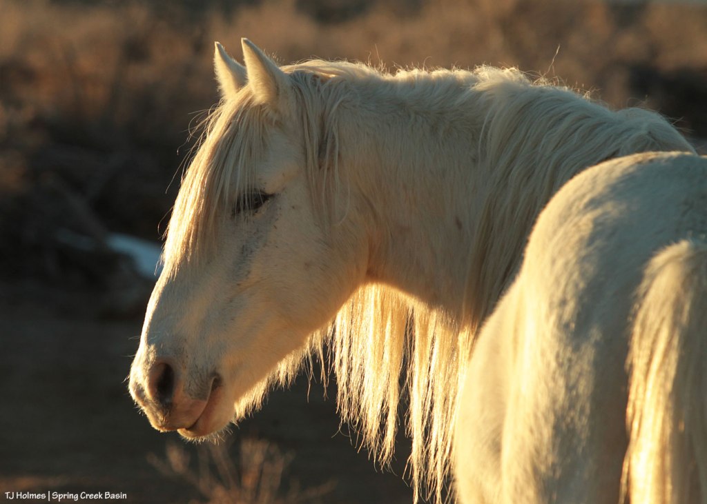 Here, he and his band, which has grown by a couple over the last few months, were nearly to a pond for their evening drink when they spotted another band coming from the far side of a nearby ridge. The other band was nearly to them before Sundance’s band went to the edge of the pond – where another band had been drinking just before THEY arrived. They finished their drinking in peace while the other band waited respectfully, then changed places with only a minimum of fuss between Sundance and the other (much younger) stallion.