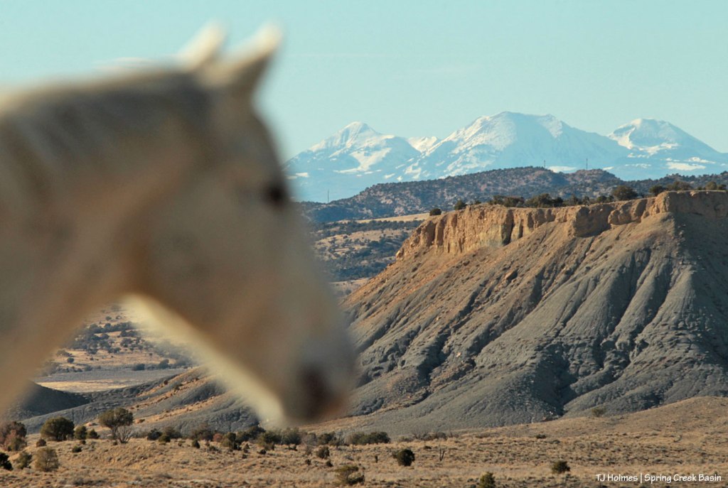 I love showing these near-and-far images, and I hope you, dear readers, enjoy seeing them! We have such spectacular imagery within Spring Creek Basin and beyond, not limited to our magnificent mustangs. 😉