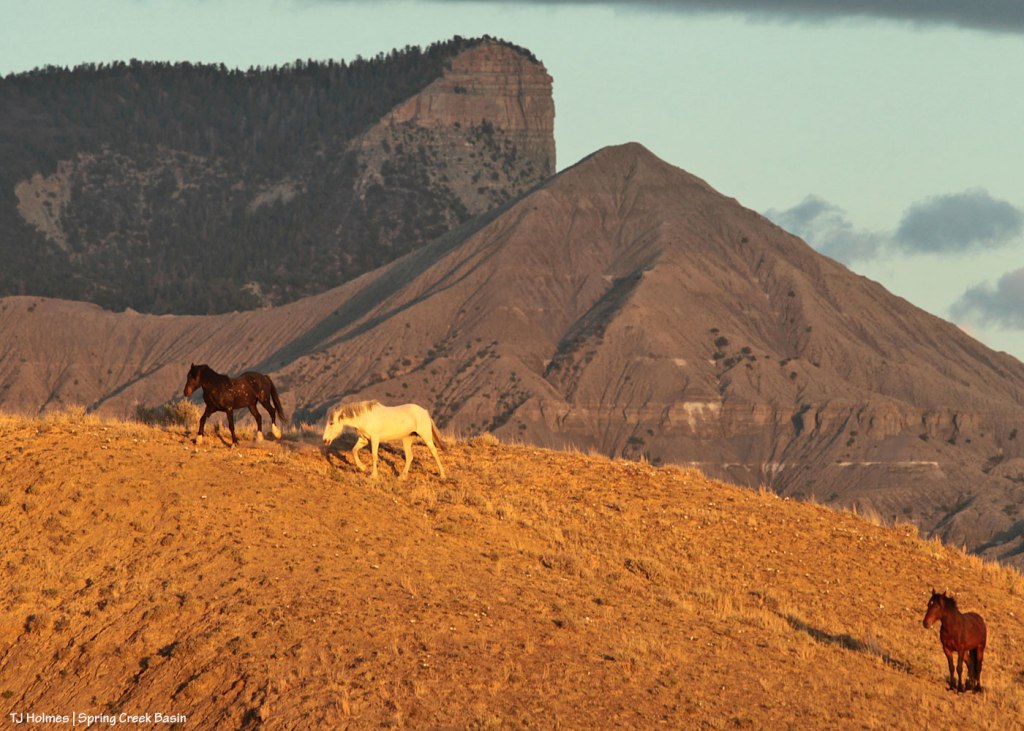 A little background: Last year was the 50th anniversary of the Wild Free-Roaming Horses and Burros Act. CANM had a wonderful special exhibit all year that celebrated mustangs – especially our Colorado herds in Spring Creek Basin, Little Book Cliffs, Sand Wash Basin and Piceance-East Douglas. To help promote that, we were invited to a very special one-day event last fall, to introduce a couple of our local adopters of Spring Creek Basin mustangs, have advocate and author Kathryn Wilder read from her memoir, Desert Chrome (published in May), and take limited numbers of visitors (still under Covid protocols) through the exhibit inside the museum.