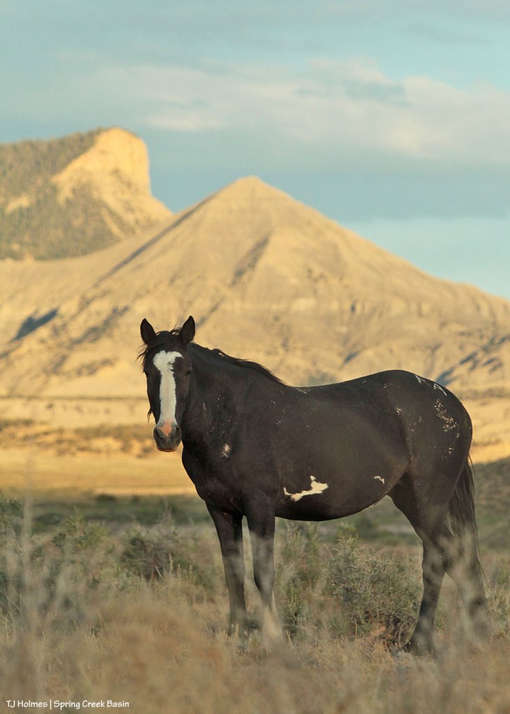 Beautiful mustang Cassidy Rain and beautiful backdrop to Spring Creek Basin’s wildness. Now that, also, is complementary. 🙂